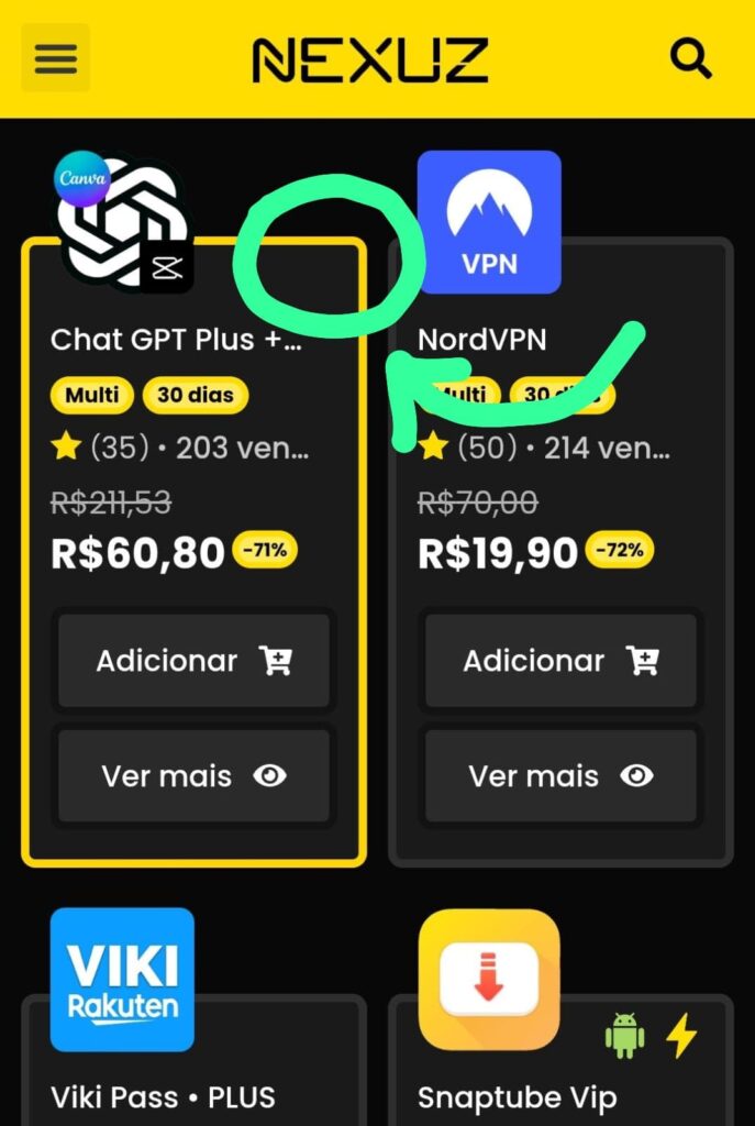 Acessos com borda amarela indicam que fazem parte de um combo especial, reunindo mais benefícios/ descontos em uma única oferta.